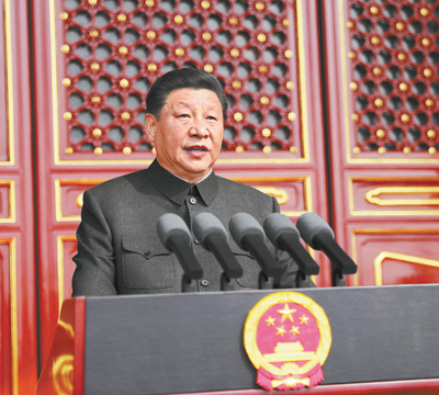 习近平强调,中国的昨天已经写在人类的史册上,中国的今天正在亿万人民手中创造,中国的明天必将更加美好。全党全军全国各族人民要更加紧密地团结起来,不忘初心,牢记使命,继续把我们的人民共和国巩固好、发展好,继续为实现“两个一百年”奋斗目标、实现中华民族伟大复兴的中国梦而努力奋斗。