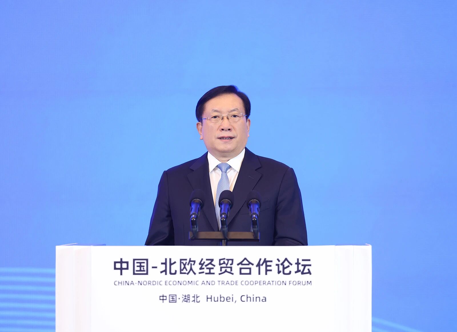 王忠林代表省委、省政府向出席论坛的各位嘉宾表示欢迎,向长期以来关心支持湖北发展的海内外朋友表示感谢。他说,举办2025中国—北欧经贸合作论坛,是深入贯彻落实习近平主席重要指示精神、坚定不移扩大高水平对外开放、高质量共建“一带一路”的重要举措,是湖北与欧洲各国共享开放机遇、共促发展进步的重要平台。中国—北欧经贸合作论坛作为全国唯一专门面向北欧国家的经贸合作长效机制,自2018年启动以来,已成功举办六届,成为中欧扩大经贸合作、深化交流交往的标志性名片。本届论坛以“支点湖北 智链全球”为主题,汇聚30多个国家、200多家世界500强企业的代表和嘉宾,必将为深化中欧全面战略伙伴关系、建设开放型世界经济注入强劲动力。